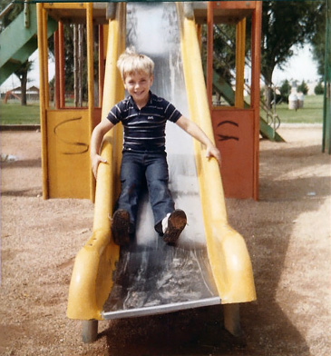 Posing in front of Frontier Land playground in Carlsbad, New Mexico.