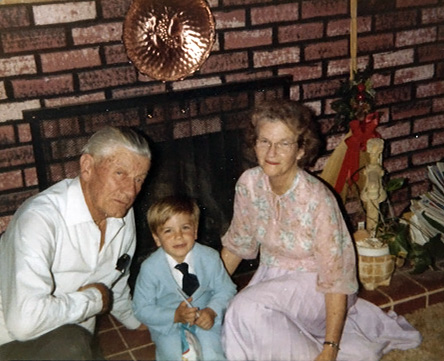 Easter of 1980, with great-grandparents, Fred & Hazel Satcher.