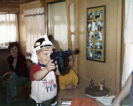 Bang! Bang! Playing with new toys from his 3rd birthday.