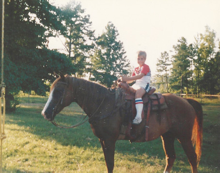 Keith, age 9, on his horse Dan, at Grandparent's ranch.