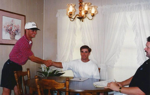 Keith signing his Letter of Intent to play baseball at North Central Texas Junior College. RHS Coach Stone (left) and NCTJC Coach Darwin (right).